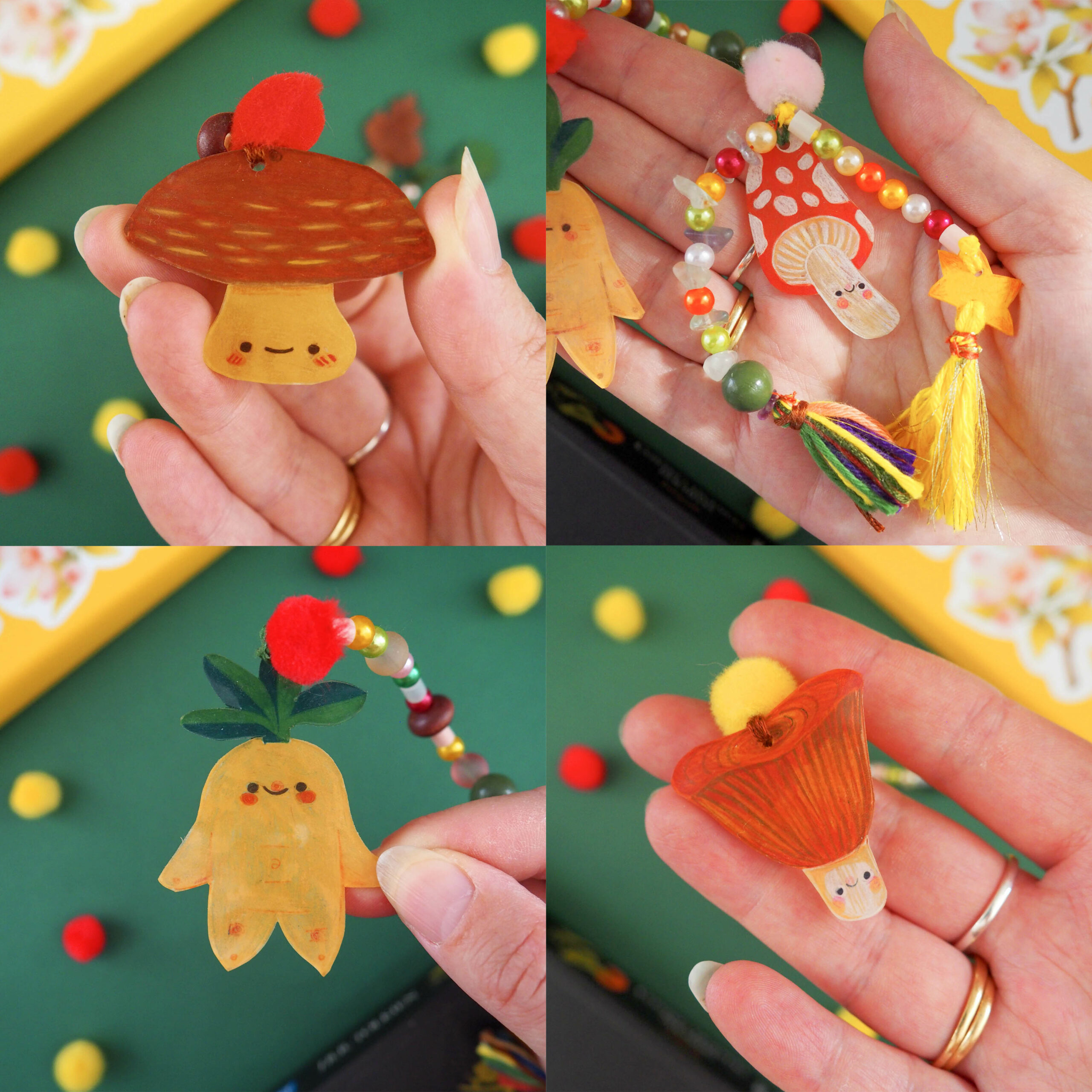 Composition précise de la décoration: plastique fou, perles en bois, en verre et en plastique, fils de coton DMC.