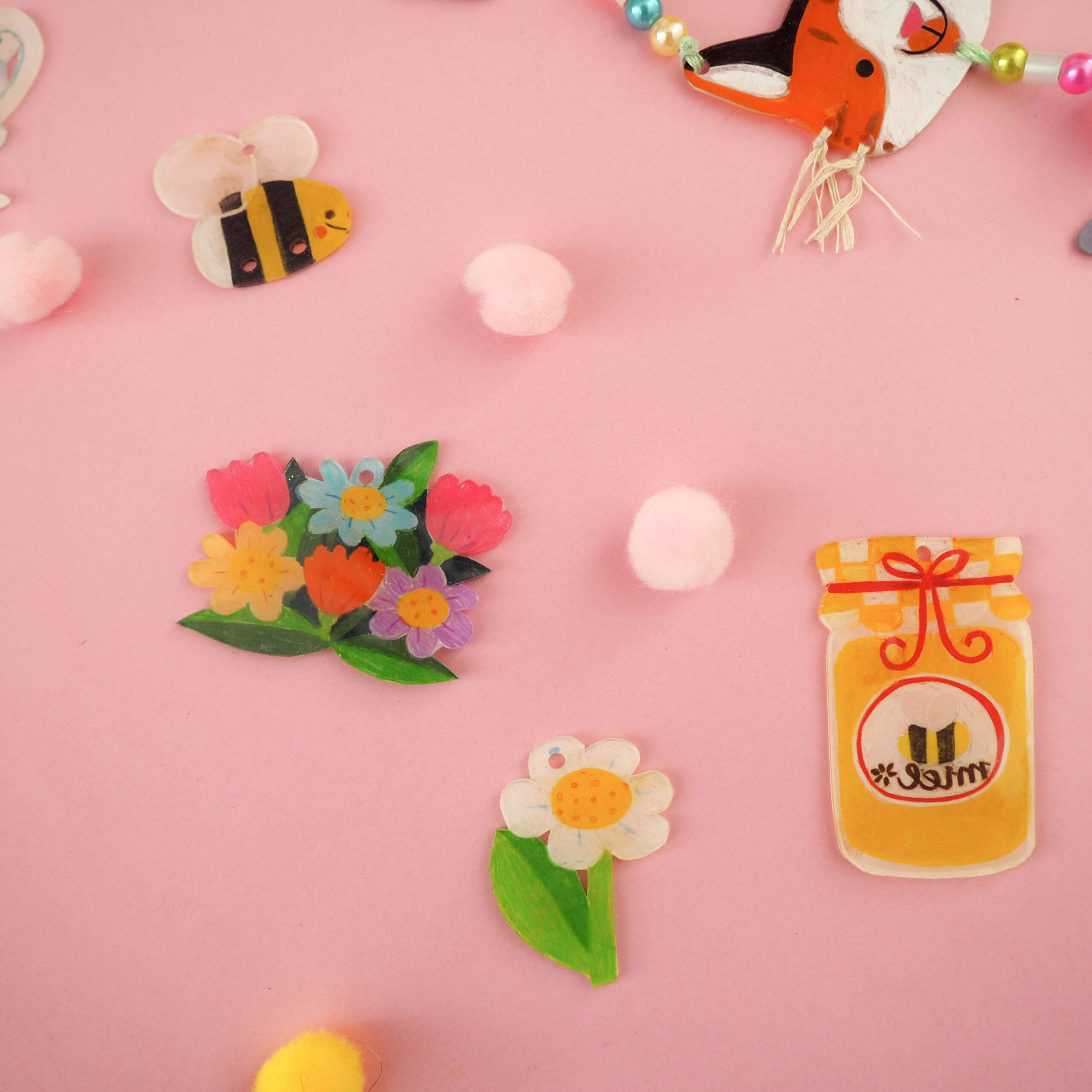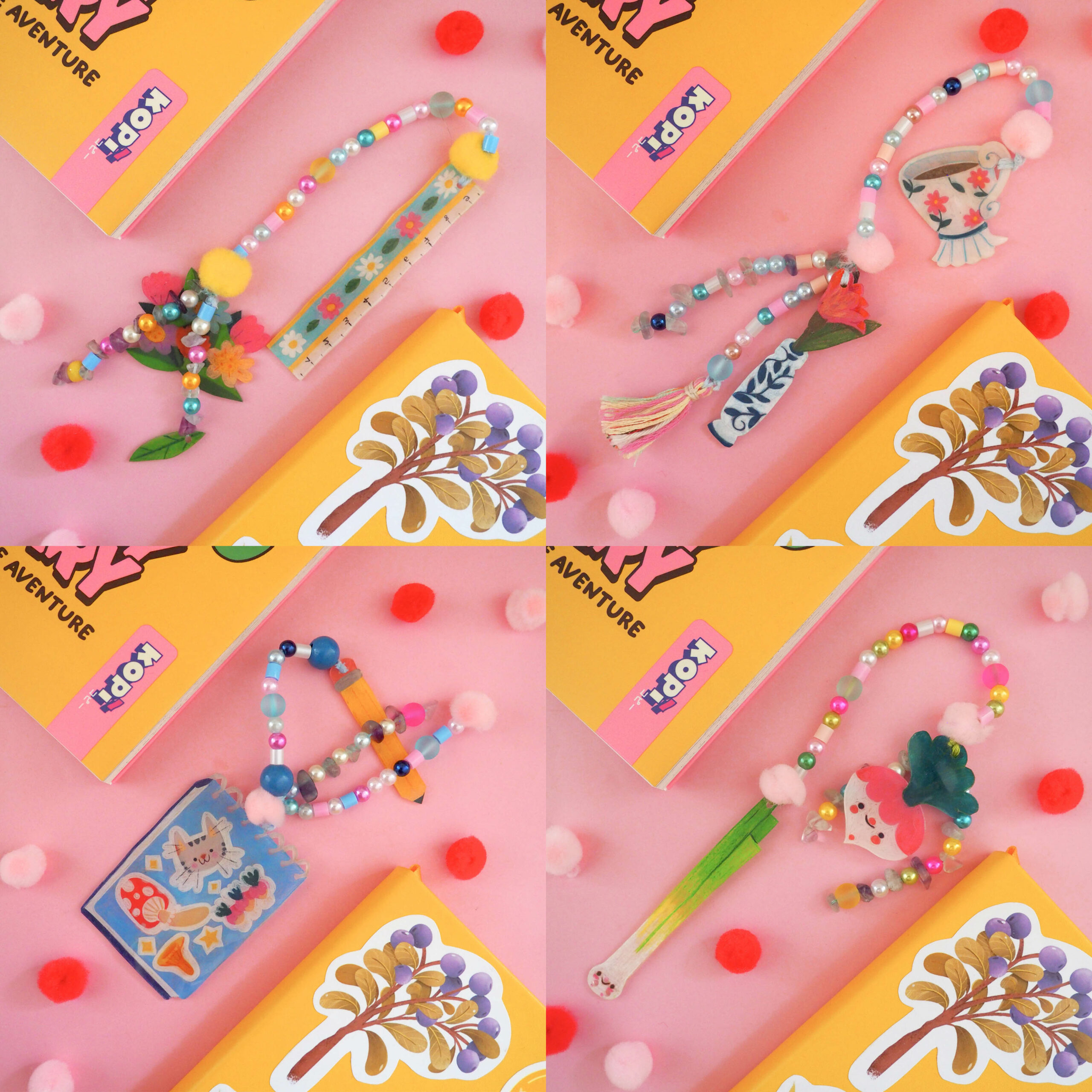 Vous pouvez choisir ici le nombre de figures et babioles qui compose votre décoration. Chaque figure est reliée par un cordon en perles.