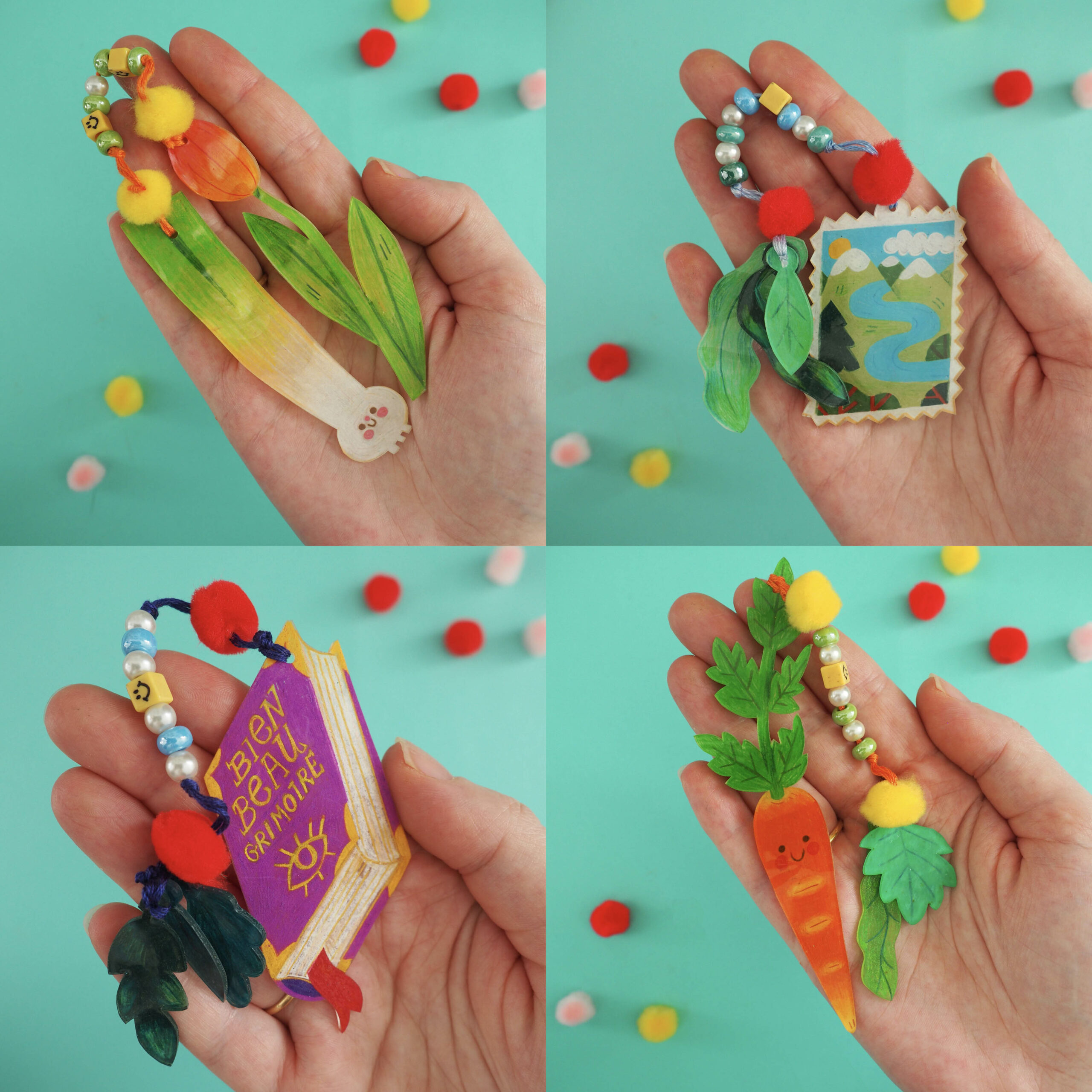 Les petits éléments (ici le petit soleil et l’étoile) sont appelés babioles, les grands éléments (ici la carotte) sont appelés figures. Dans cet exemple, la commande correspond à la composition 1